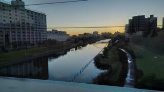 出勤途中の旧中川鉄橋(江戸川区と江東区の区界)付近の日の出の様子と今朝の富士山