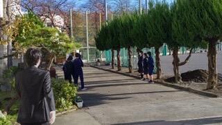昇降口近くを担当してくれている生徒たち。ありがとう。