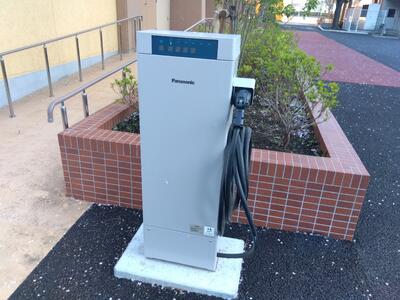 体育館前にある充電設備、これは自由に使える??私は電気自動車は持っていませんが・・‥