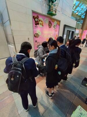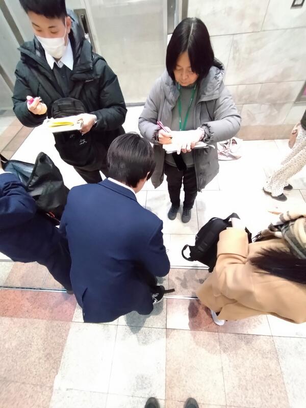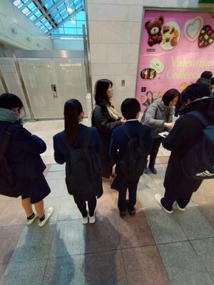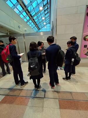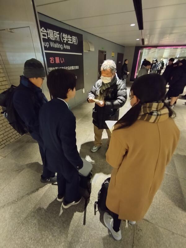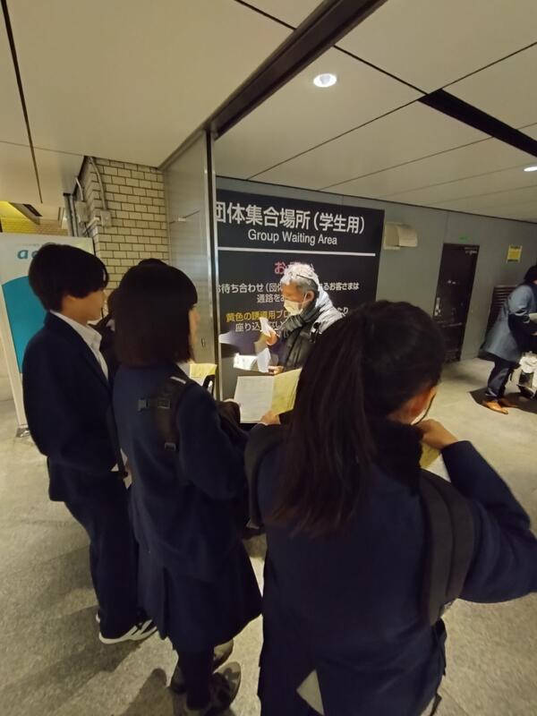 ■1月23日(金)、2年生の校外学習です。班ごとに立川駅で出発チェックを受けました。昨日の時点で参加予定の生徒は全員元気に出発しています。
