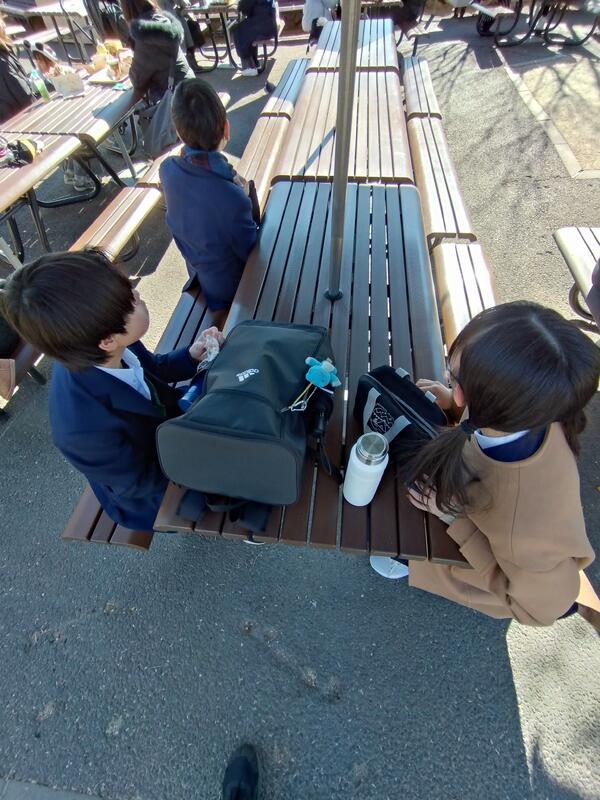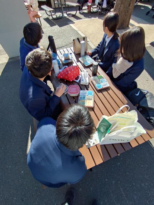 ■昼食は持参したお弁当を、各班の見学場所、もしくはその近くで食べる予定となっています。写真の班は上野動物園で昼食となっています。天気が良くて本当によかったです。