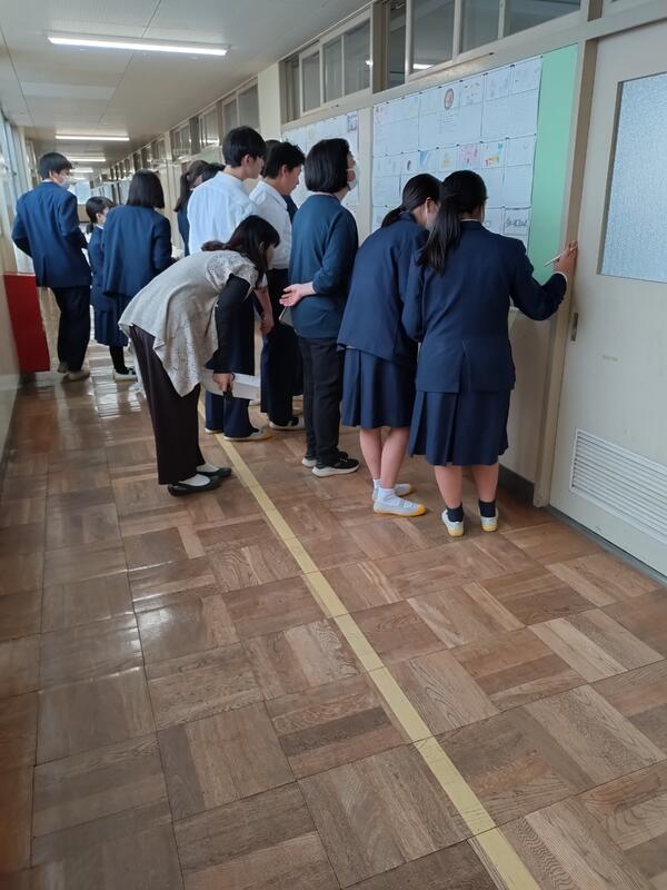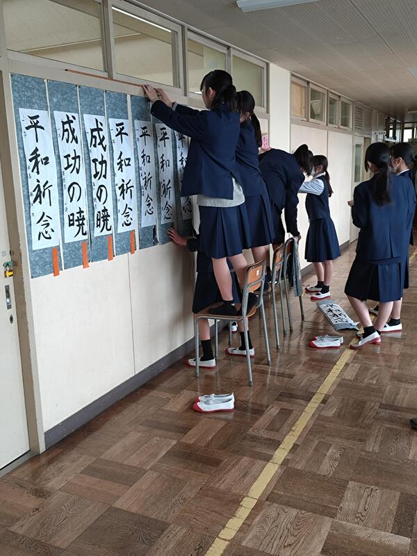 ■2月27日(金)6校時に全校生徒で作品展示を行いました。3月2日(月)からの作品展示会のための準備です。短い時間でしたが集中して取り組みました。