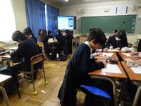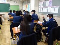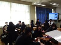 内容は、情報モラルをテーマとしたグループワークで、東京都都民安全推進部ファミリeルール事務局の方と学生サポーターを講師に迎え、各学級で行いました。