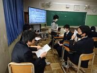 2年生の英語の授業では、まとまりのある英文を読んで、「概要」と「要点」を読み取る活動に取り組んでいました。