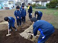 また、この日は、種イモ用のサトイモを藁を敷いた穴の中に埋めて貯蔵したり、使っていたシート類を剥がしたりして、畑じまいに向けた準備もしました。