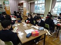 2年生は学校図書館支援指導員の協力で「オリジナルかるたづくり」に挑戦しました。