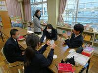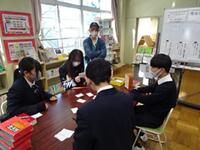 授業の後半では、出来上がったカルタで、グループごとに「カルタ取り」に挑戦しました。