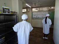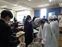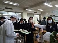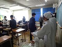 給食当番が手際よく盛り付け、配膳を進めていました。