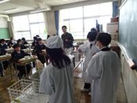 1年生も、先生や、お手伝いに来てくれた2年生の給食委員の先輩にアドバイスをもらいながら、配膳などの準備を進めました。