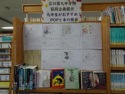 若葉図書館では、九中生が作成した本のPOPと本が展示されています。